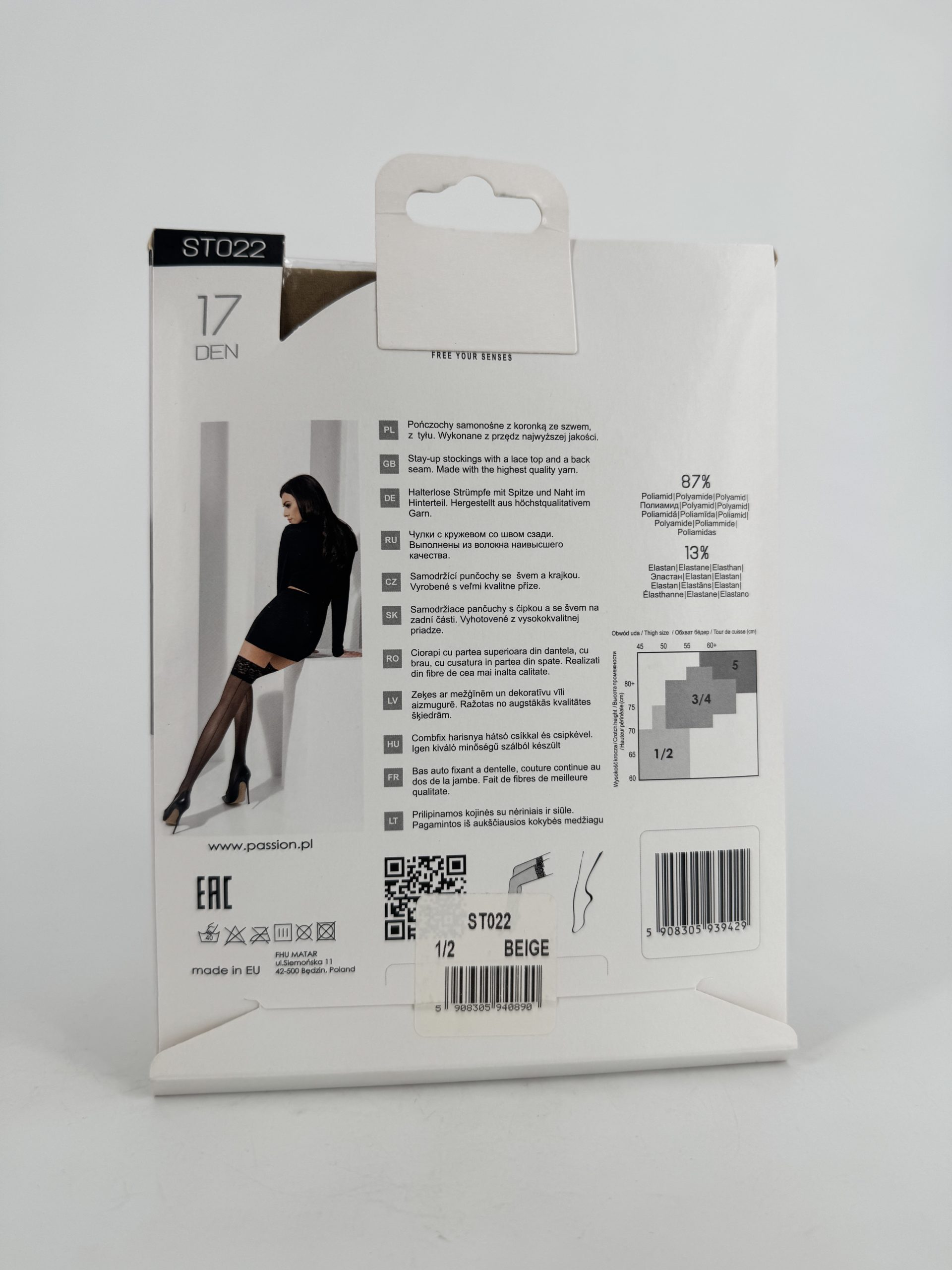 Les bas ST022 se caractérisent par une couture arrière qui allonge visuellement la jambe. Autofixants, ils offrent un style pin-up sans jarretelles. Idéals avec une robe crayon ou une lingerie vintage.