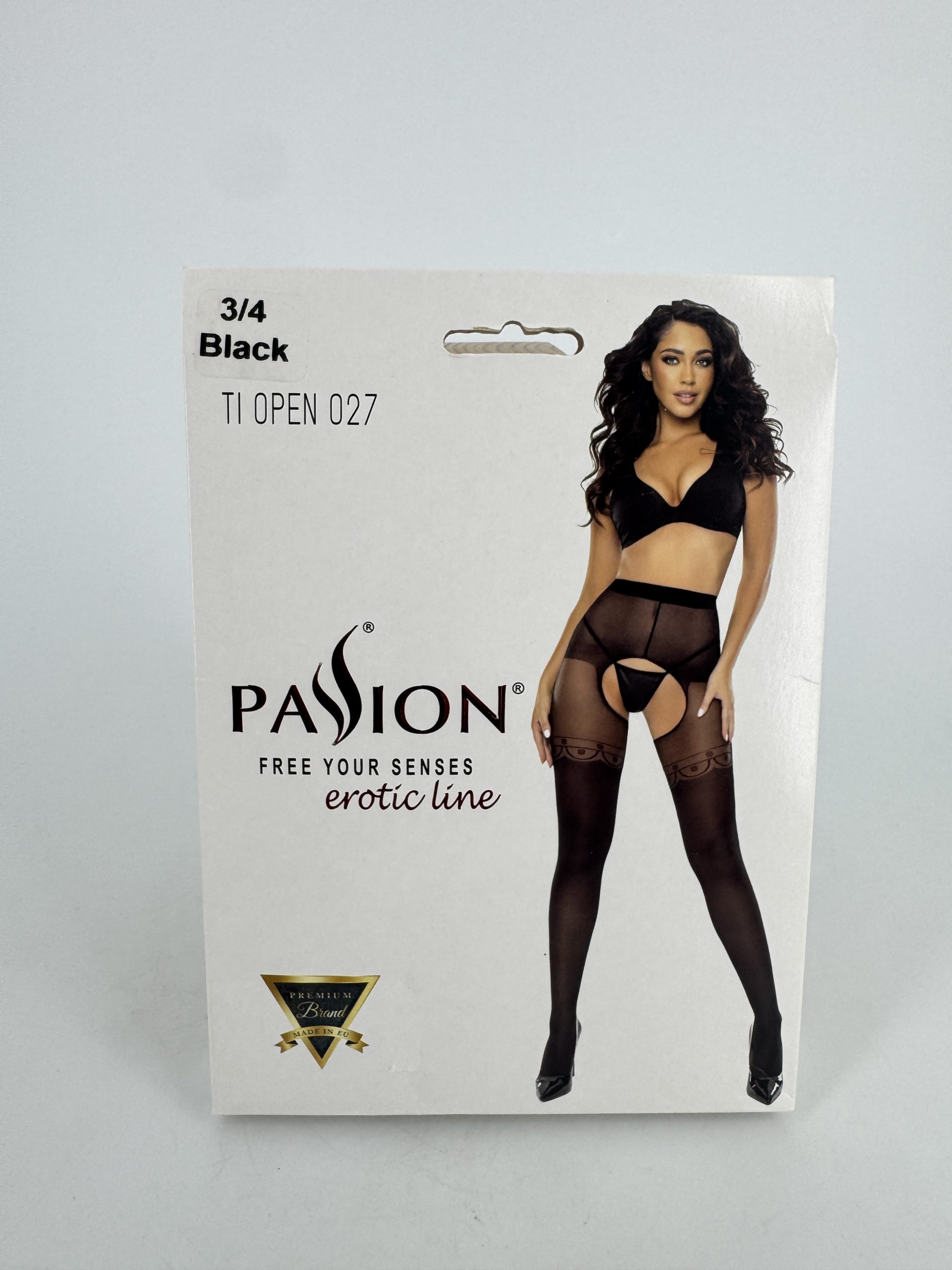 Collants ouverts voile noir Passion 027, taille 3/4.
