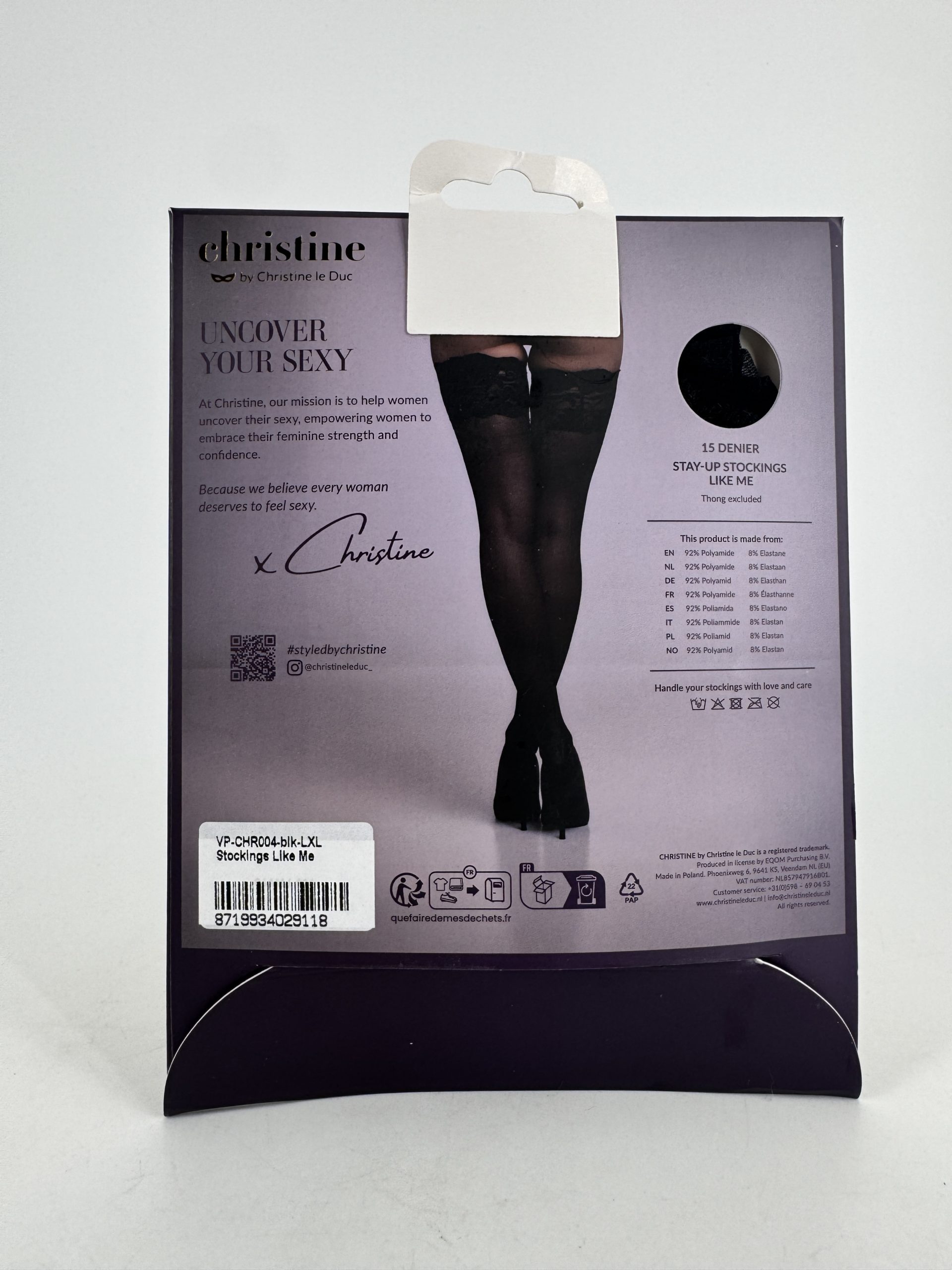 Bas autofixants 15 deniers dentelle Christine L/XL, bas luxe.
